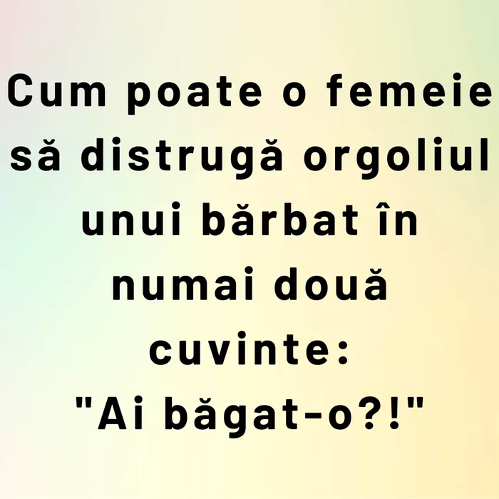 Bancul de vineri arată care sunt cele două cuvinte care pot distruge orgoliul oricărui bărbat.
