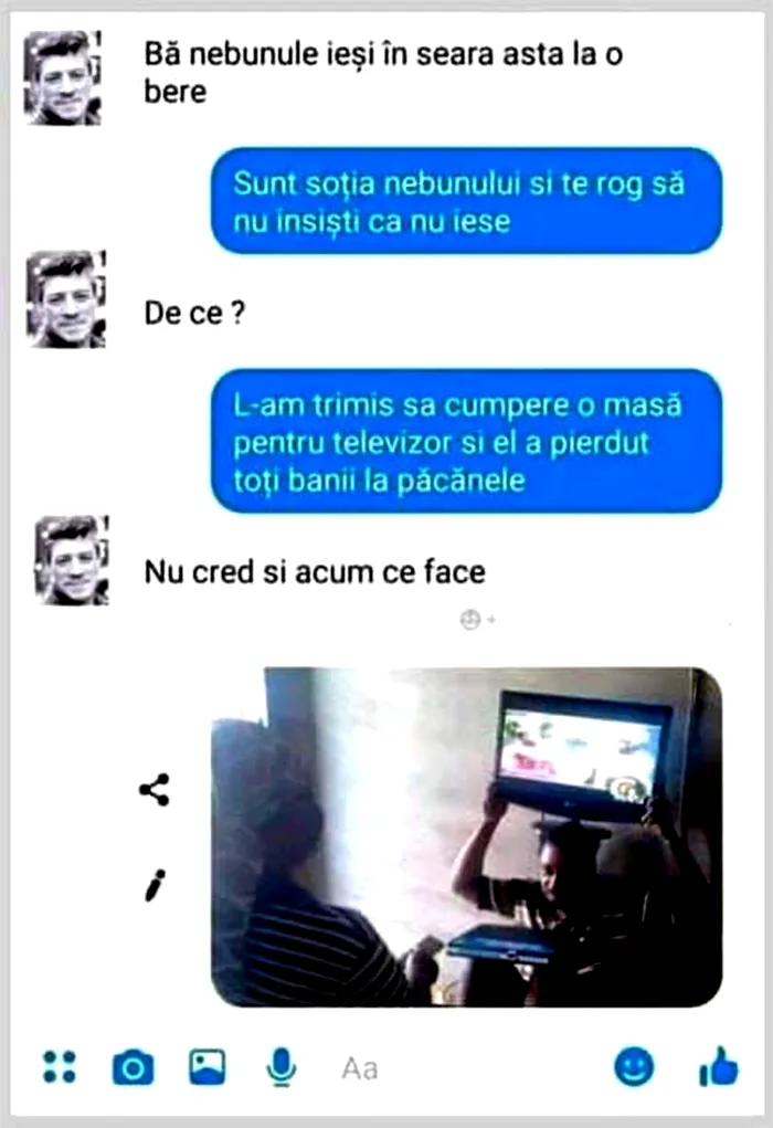 Prima pagină » Bancuri » Bancul de vineri | „L-am trimis să cumpere o masă pentru televizor și a pierdut toți banii la păcănele”