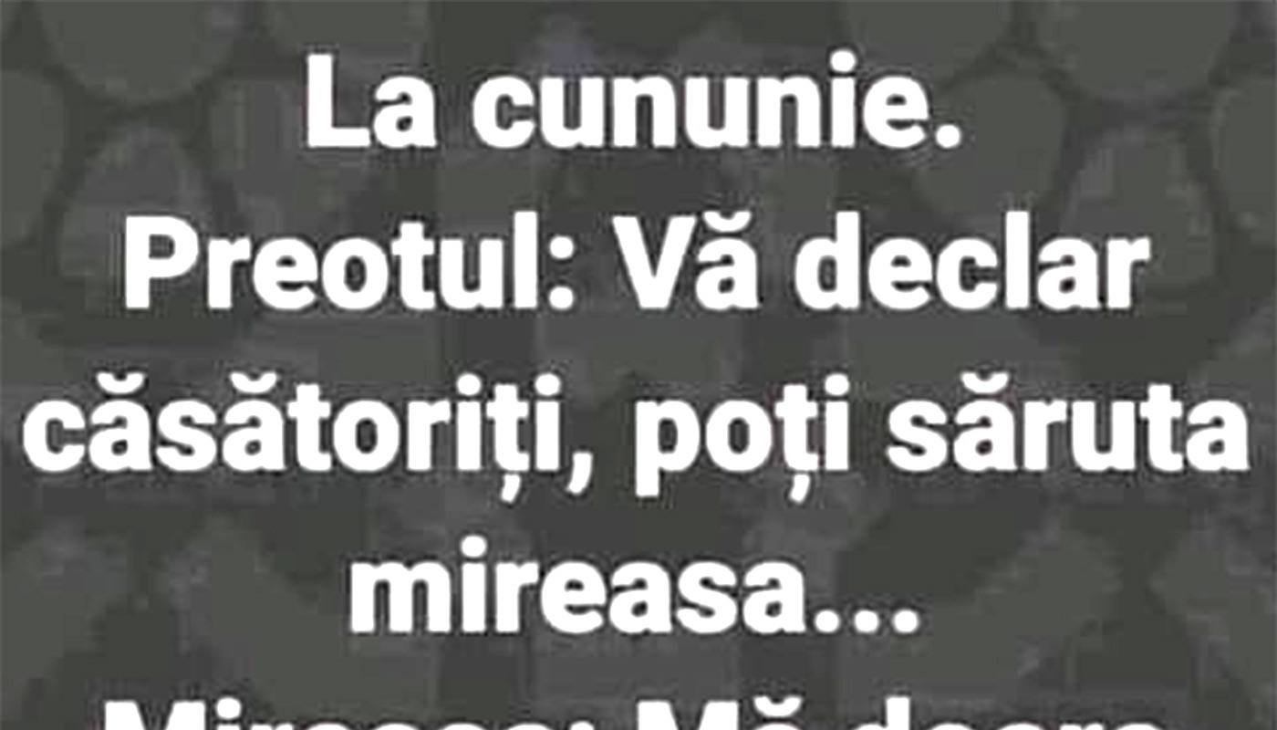 Preotul: Vă declar căsătoriți, poți săruta mireasa!