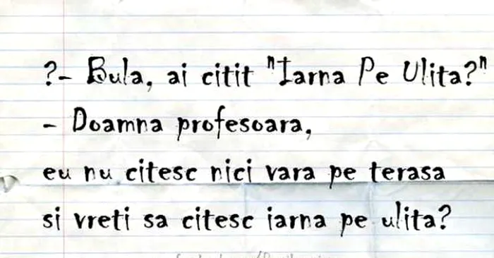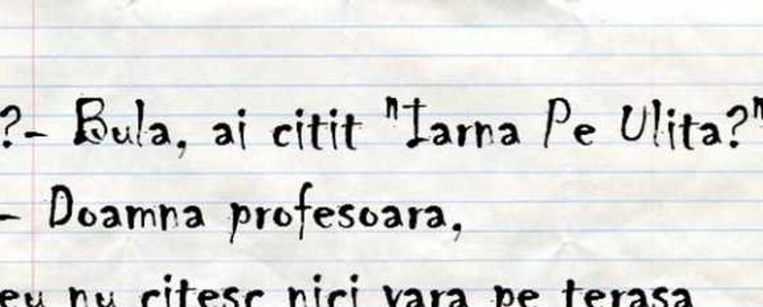– Doamna profesoară, eu nu citesc nici vara pe terasă și vreți să citesc iarna pe uliță?”