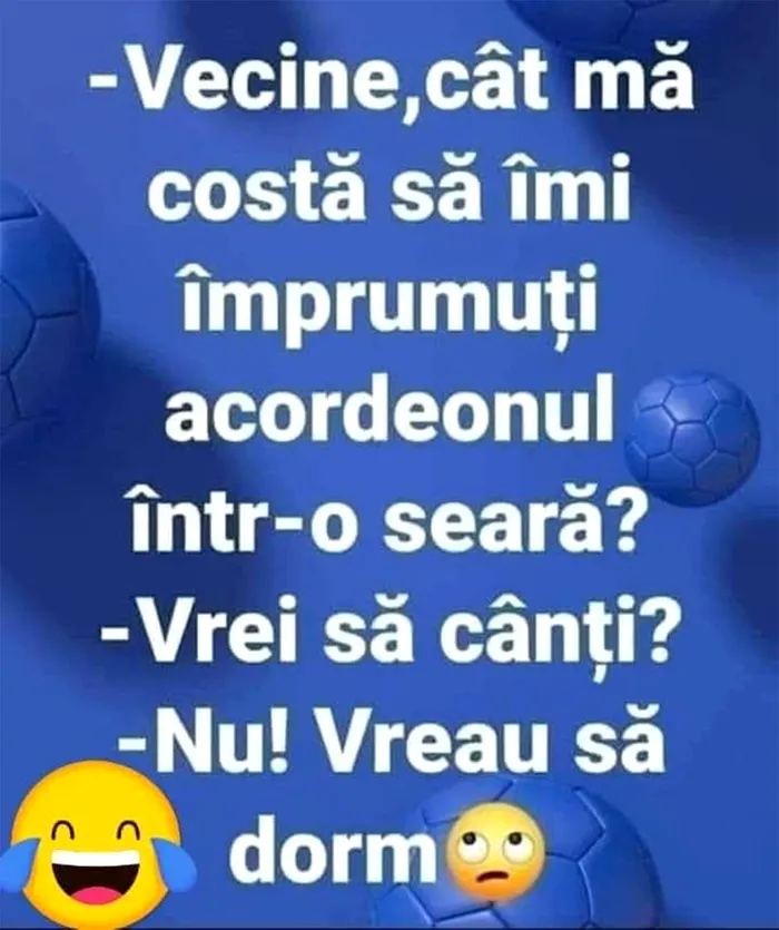 Dacă e joi, atunci vă delectăm cu un nou banc haios. De data aceasta, este vorba despre o discuție între doi vecini. Unul dintre ei îi cere celuilalt cu împrumt acordeonul. Motivul este nebănuit.