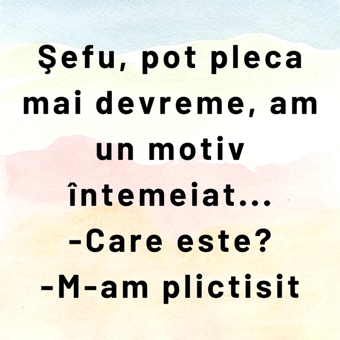 -Șefu, pot pleca nai devreme, am un motiv întemeiat…