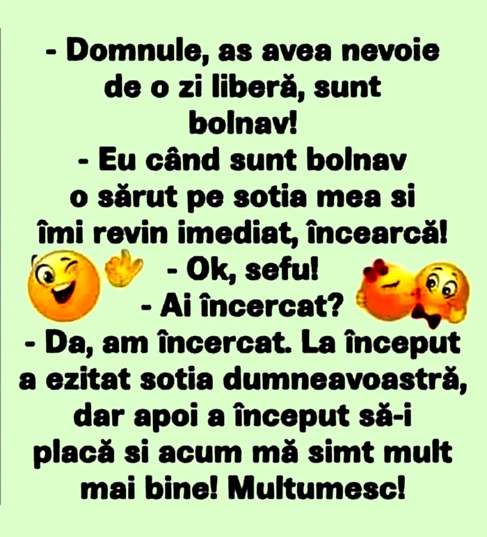 Prima pagină » Bancuri » BANCUL ZILEI | „Aș avea nevoie de o zi liberă, sunt bolnav”