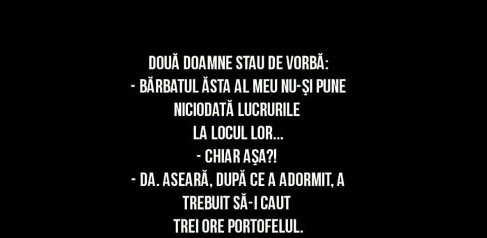 – Bărbatul ăsta al meu nu-și pune niciodată lucrurile la locul lor….