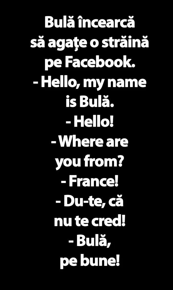 BANCUL ZILEI | Bulă încearcă să agațe o franțuzoaică pe Facebook