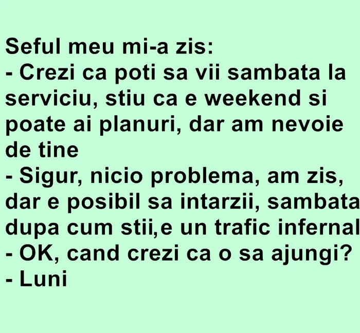 – Crezi că poţi să vii sâmbătă la serviciu, ştiu că e weekend şi poate ai planuri, dar am nevoie de ţine