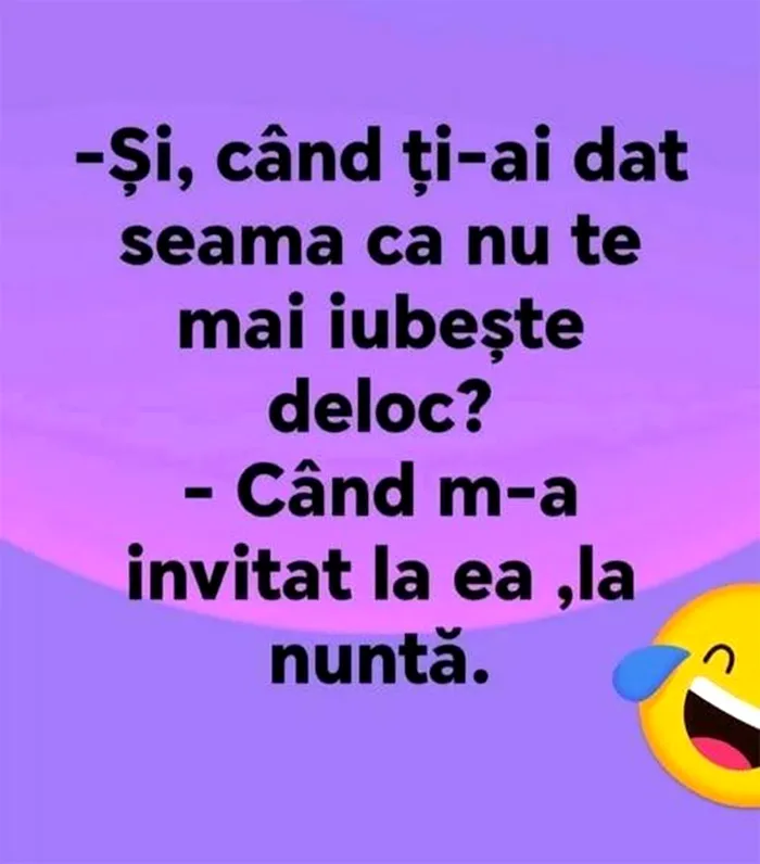 Gândul.ro vă invită la o porție de râs și vă propunem un banc care va aduce zâmbetul pe buzele tuturor. Este vorba despre un dialog între doi bărbați surprinși că unul dintre ei nu mai este iubit de femeia pe care o place.