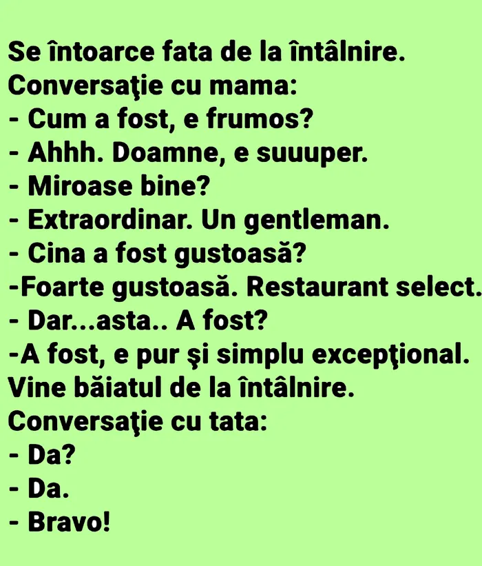 – Păi aseară, când mâncam, mi-a zis: … — Continuarea aici
