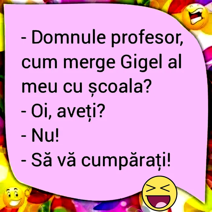 Prima pagină » Bancuri » BANCUL ZILEI | „Domnule profesor, cum merge Gigel al meu cu școala?”