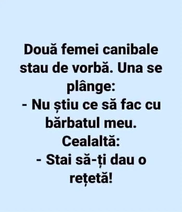 Prima pagină » Bancuri » BANCUL ZILEI | Două femei canibale stau de vorbă
