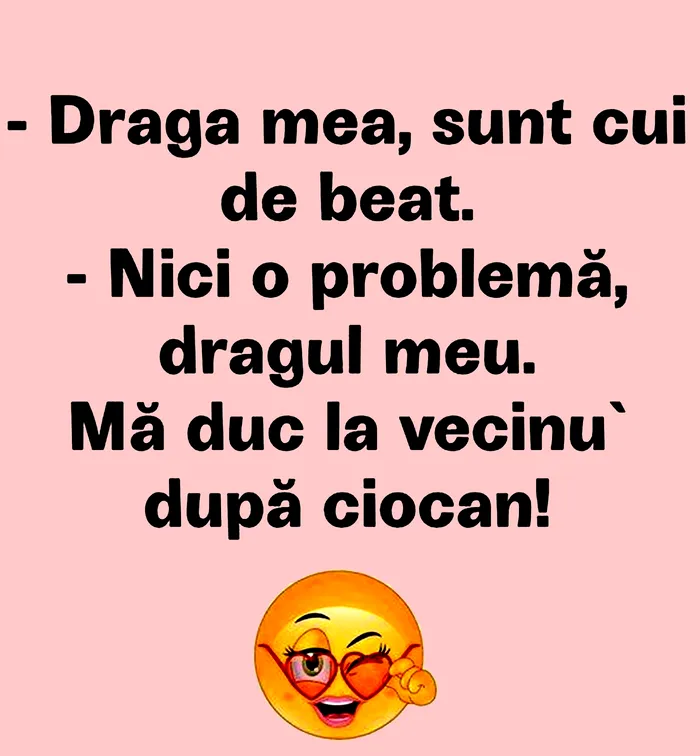 – Nicio problemă, dragul meu, mă duc la vecinu’ după ciocan!