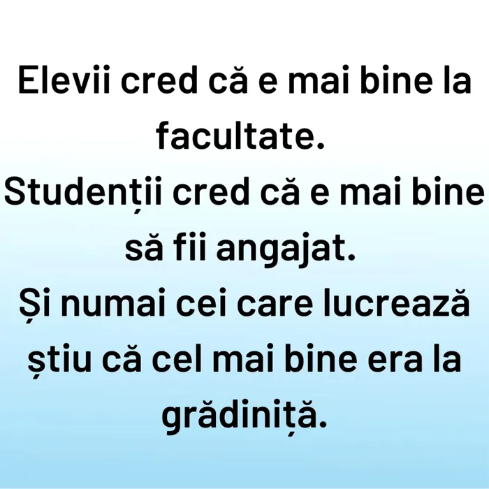 Și numai cei care lucrează știu că cel mai bine era la grădiniță.