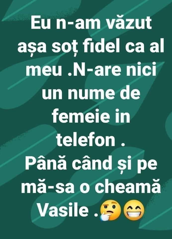 Eu n-am văzut așa soț fidel ca al meu. Până când și pe mă-sa o cheamă Vasile!
