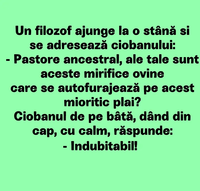 Ciobanul, de pe bâtă, dând din cap, cu calm, răspunde:
