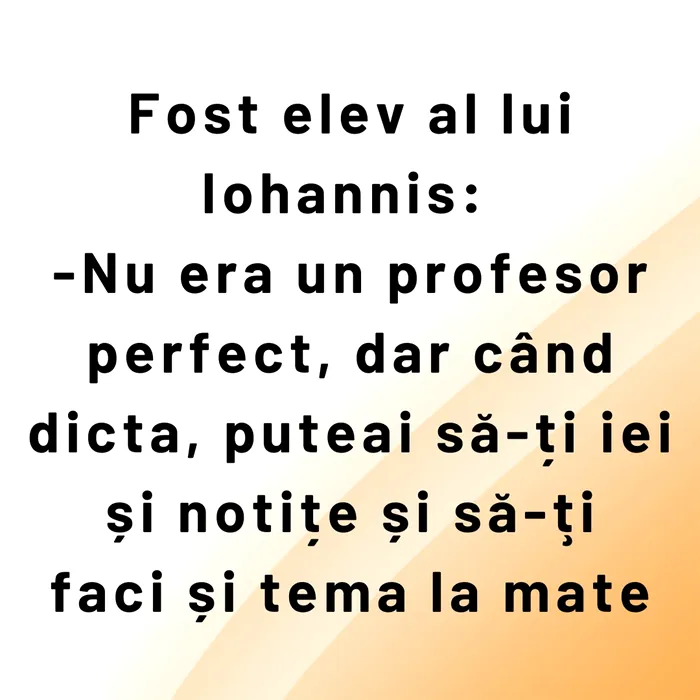 – Nu era un profesor perfect, dar când dicta, puteai să-ți iei și notițe și să-ți faci și tema la mate.