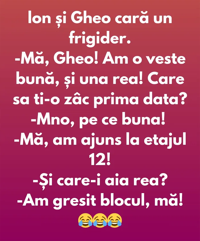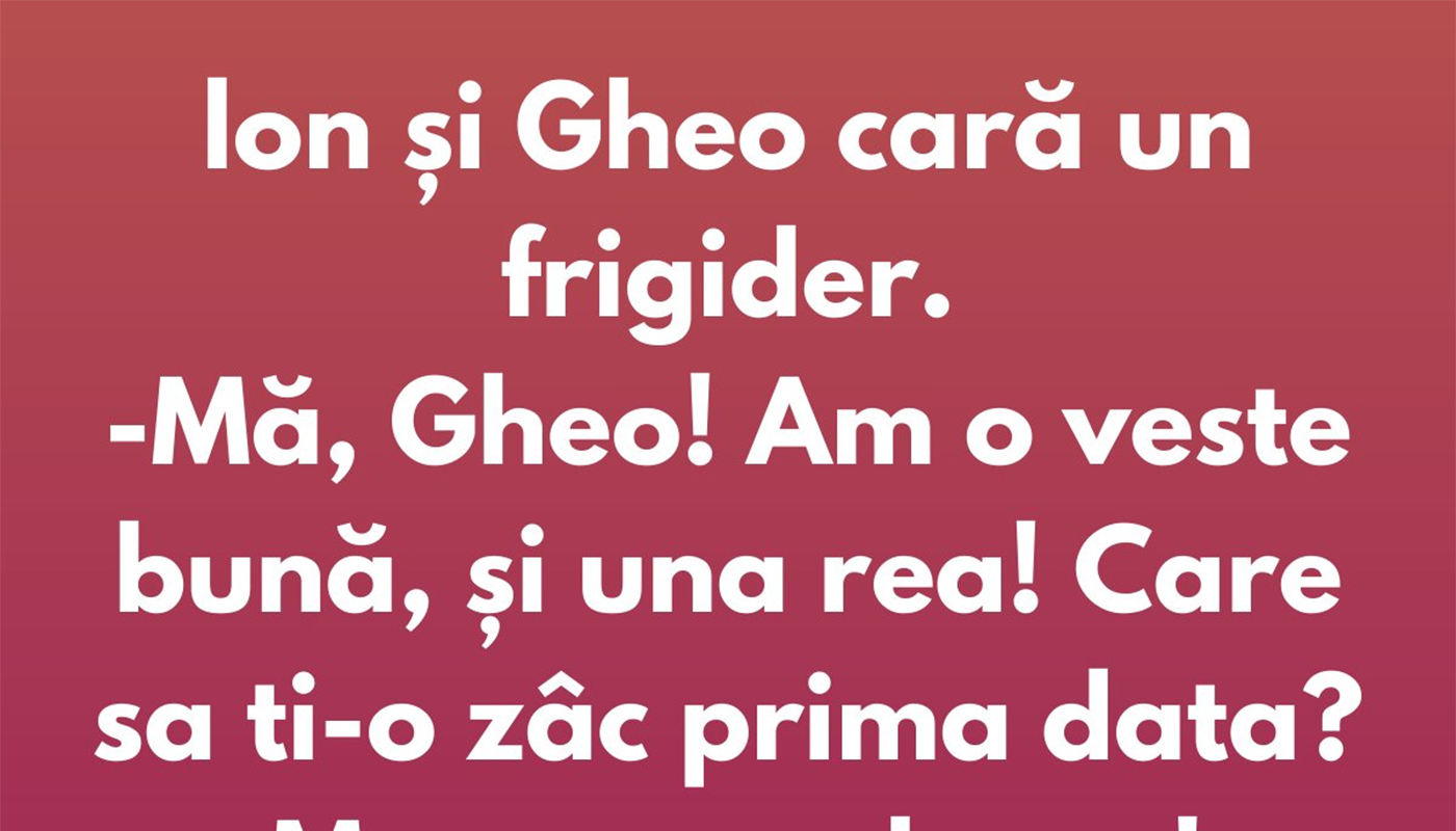 – Mă, Gheo! Am o veste bună, și una rea! Care să ți-o zâc prima dată?