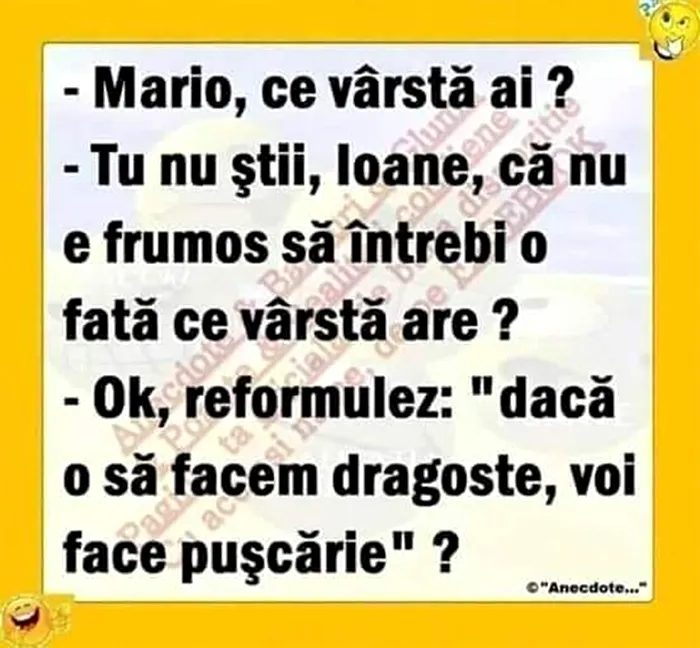 -Tu nu știi, Ioane, că nu e frumos să întrebi o fată ce vârstă are?