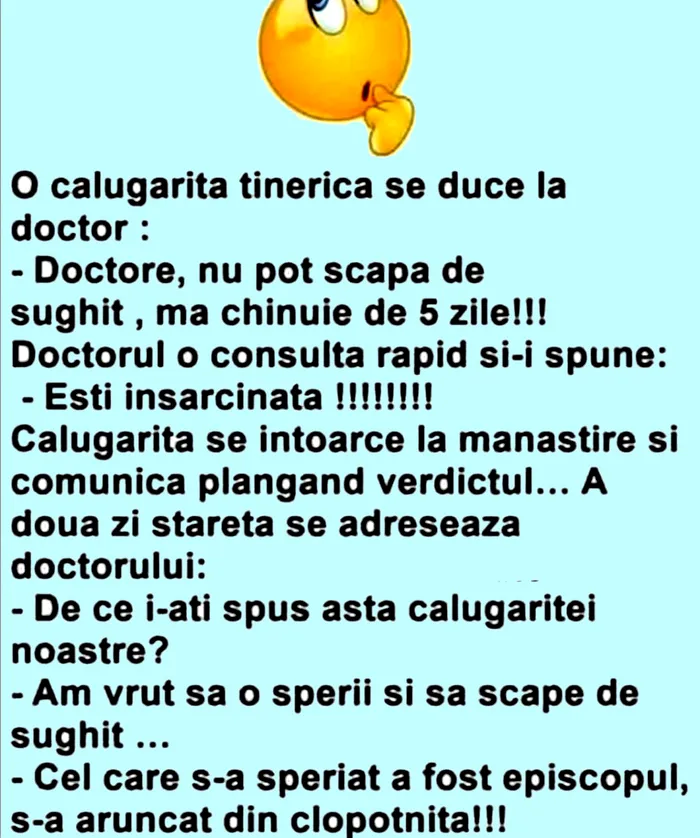 – Doctore nu pot scăpa de sughiț, mă chinuie de 5 zile!