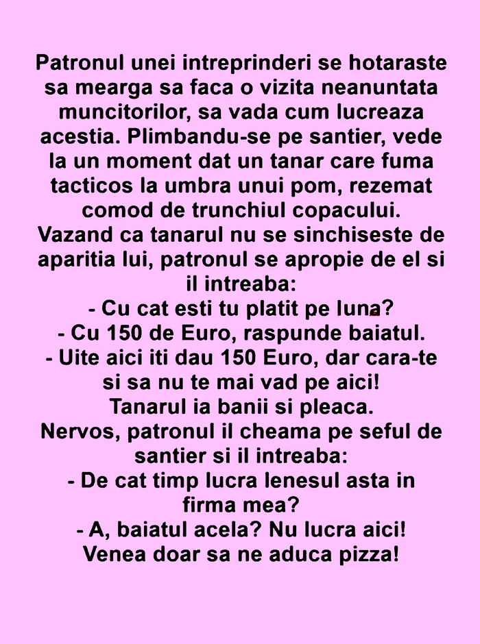 BANCUL ZILEI | Patronul întreprinderii face o vizită neanunțată muncitorilor