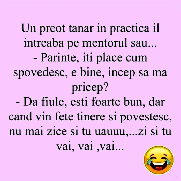 – Părinte, îți place cum spovedesc, e bine, încep să mă pricep?