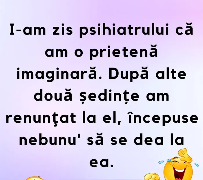 Știți bancul cu psihiatrul care are o iubită imaginară? Hai că deja v-am stârnit interesul, suntem convinși. Sigur, o să vă placă! Iată-l: