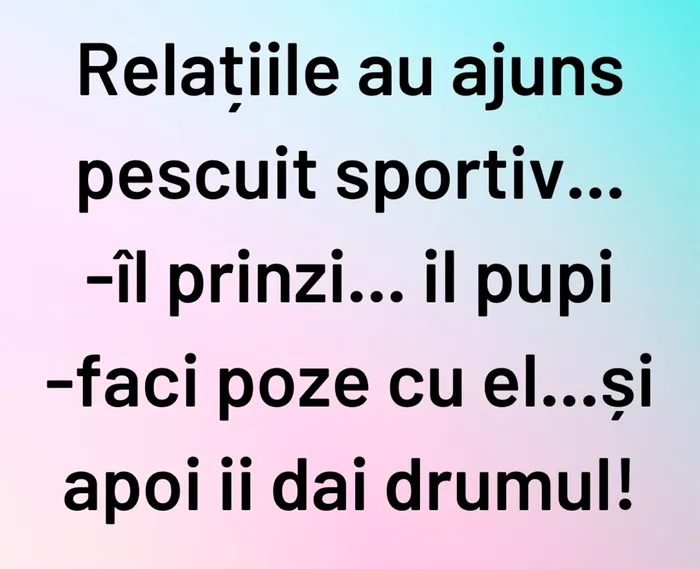 Relațiile au ajuns pescuit sportiv… Îl prinzi, îl pupi, faci poze cu el… și apoi îi dai drumul!