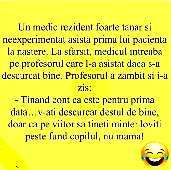 Gândul vă urează să aveți o zi de miercuri cu zâmbete! Hai să pornim cu voie bună de dimineață! Protagonistul glumei de azi este … rezidentul neexperimentat.
