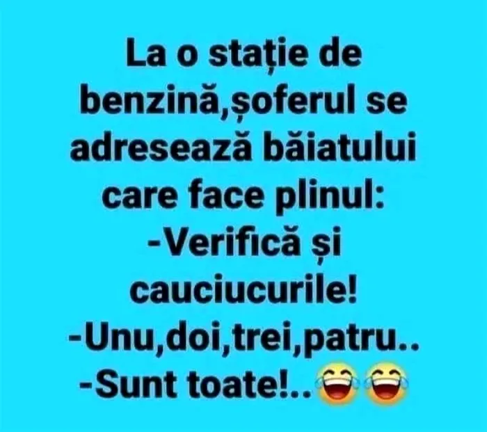 La o stație de benzină, șoferul se adresează băiatului care face plinul: