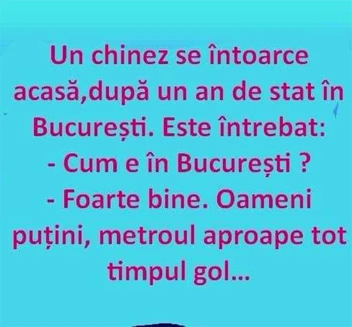 Prima pagină » Bancuri » BANCUL ZILEI | Un chinez se întoarce acasă, după un an în București