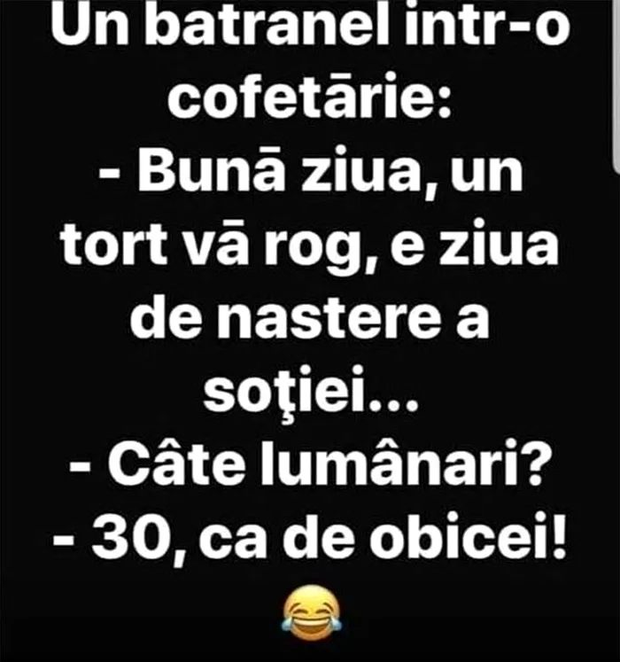 – Bună ziua, un tort vă rog, este ziua de naștere a soției.