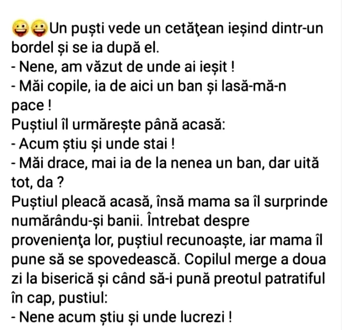 BANCUL ZILEI | Un puști vede un bărbat ieșind dintr-un bordel