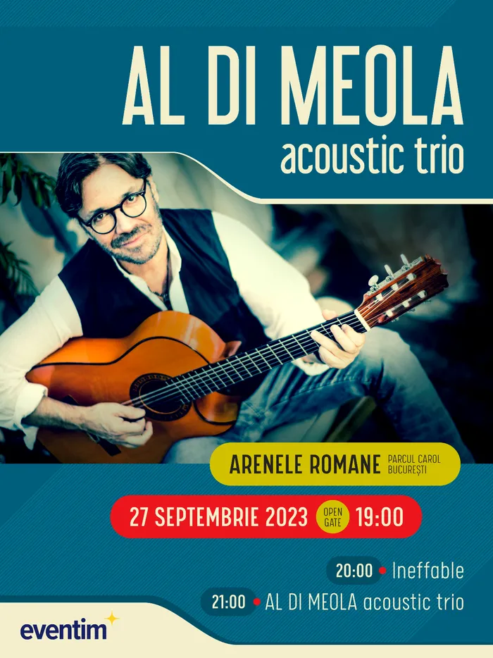 În data de 27 septembrie 2023 Arenele Romane din București vor găzdui o seară de concerte jazz, în organizarea Asociației Forfun, cu scopul de a promova tinere talente locale, oferindu-le posibilitatea de a performa în deschidere la concertele artiștilor cu notorietate internațională. Astfel de la orele 20:00 va urca pe scenă trupa Ineffable, iar de la orele 21:00 va avea loc concertul AL DI MEOLA acoustic Trio. Biletele se pot procura pe platformele iabilet.ro, bilete.ro și eventim.