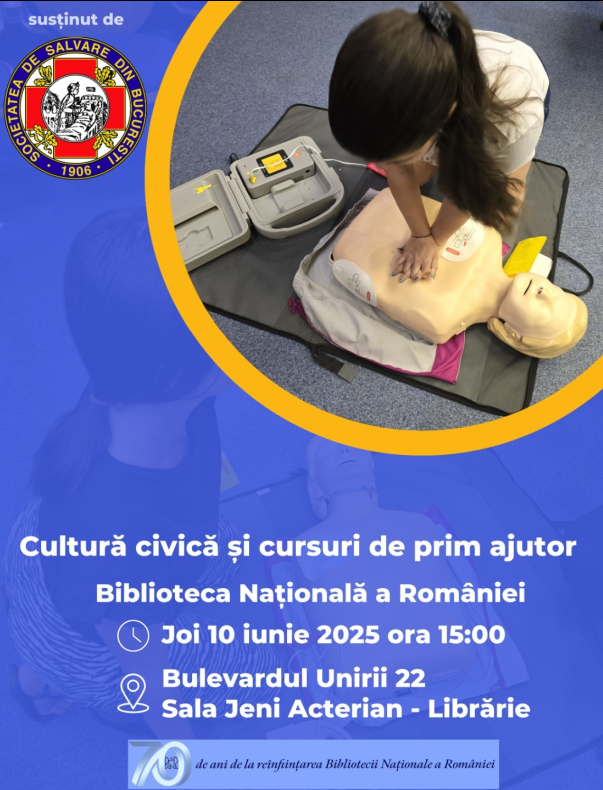 Biblioteca Naţională a României şi Asociaţia „Societatea de Salvare Bucureşti” organizează evenimentul „Cultură civică şi cursuri de prim ajutor”, parte a unui program mai amplu de educație și implicare civică.