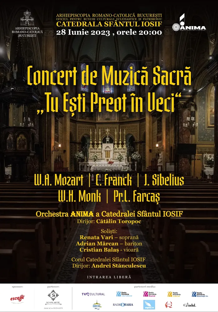 Prima pagină » Comunicate de presă » Concert de muzică sacră „TU EȘTI PREOT ÎN VECI” la Catedrala Sfântul Iosif. Când va avea loc evenimentul