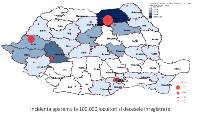 În ultimele 14 zile, un singur judet a înregistrat o incidență aparent mai mică de 100/100.000 de locuitori.