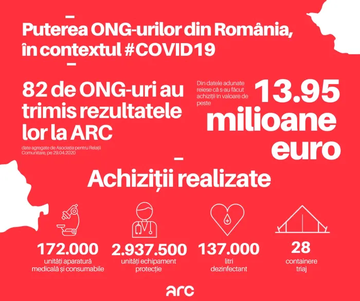 La toate acestea se adaugă „zeci de tone de produse alimentare și de igienă pentru personalul medical, pacienți, persoane carantinate, izolate, vârstnici, persoane din centre sociale etc”.