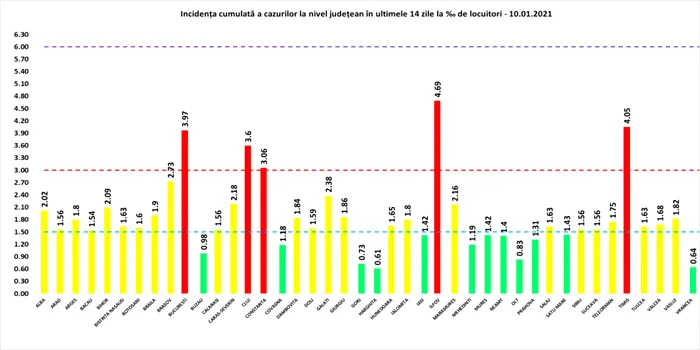 Până pe 10 ianuarie, pe teritoriul României, au fost confirmate 671.284 de cazuri de persoane infectate cu noul coronavirus (COVID – 19). 598.610 pacienți au fost declarați vindecați. În urma testelor efectuate la nivel național, față de ultima raportare, au fost înregistrate 3.082 cazuri noi de persoane infectate cu SARS – CoV – 2 (COVID – 19), acestea fiind cazuri care nu au mai avut anterior un test pozitiv.