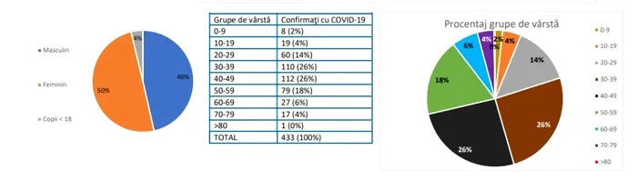 Dintre cele 433 de persoane diagnosticate cu noul coronavirus, pacienţii cu vârste cuprinse între 40-49 de ani reprezintă 26% dintre cazuri, cei cu vârste cuprinse între 30-39 de ani 18%, cei cu vârste între 20-29 de ani 14%, cei cu vârste între 60-69 de ani 4%, a informat, duminică, Grupul de Comunicare Strategică.