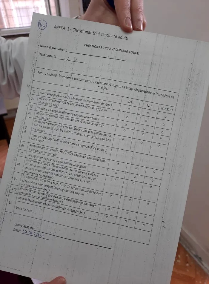 De asemenea, femeile trebuie să spună dacă sunt însărcinate. Pacienții trebuie să declare și dacă au fost infectați cu virusul SARS-CoV-2 sau dacă au avut vreun episod febril, asemănător cu gripa, în ultimele 14 zile, dar și dacă au făcut vreun vaccin în ultimele 4 săptămâni.