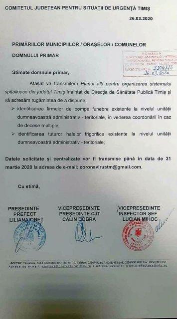 Astfel, se cere „identificarea firmelor de pompe funebre existente la nivelul unității administrativ-teritoriale, în vederea coordonării în caz de decese multiple”, dar și „identificarea tuturor halelor frigorifice existente la nivelul unității administrativ-teritoriale”.