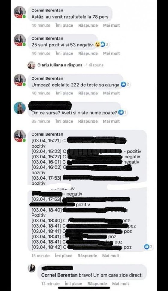 Mai exact, consilierul a scris numele cadrelor medicale, iar în dreptul acestora a trecut mențiunea pozitiv sau negativ la testul pentru COVID-19.