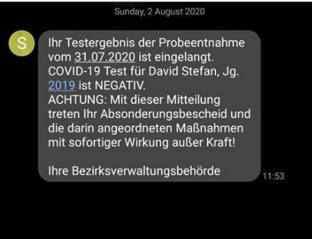 Le-am cerut să îi refacă testul și mi-am asumat că voi plăti eu toate costurile necesare pentru a primi rezultatul în 24 de ore. Mi-au spus că nu se poate. Așa că pe 30 am plecat în Austria. Am ajuns în data de 31 dimineața. I-am refăcut copilului testul, am stat două zile în carantină la domiciliu. A doua zi a venit rezultatul fiind negativ. Între timp, cei de la Bistrița i-au băgat în carantină pe părinții mei. Testul în schimb au refuzat să-l facă. Cei din România au trimis testul pozitiv în Austria la evidenția populației. După alte două zile, ne-au anunțat de la evidența populației că ni se vor reface testele, inclusiv mie și soțului, și să rămânem în casă. Așa am și făcut. Testele au fost negative pentru toți trei. Am sunat la DSP și mi-au spus că dacă și testele acestea sunt negative îi vor scoate pe părinții mei din carantină. Atunci am sunat din nou la DSP. Răspunsul lor a fost că nu am ștampilă și numele laboratorului și nu se poate ca părinții mei să fie scoși din carantină. În Austria primești testul imediat printr-un sms, nu e ca la noi, spune Alexandra.