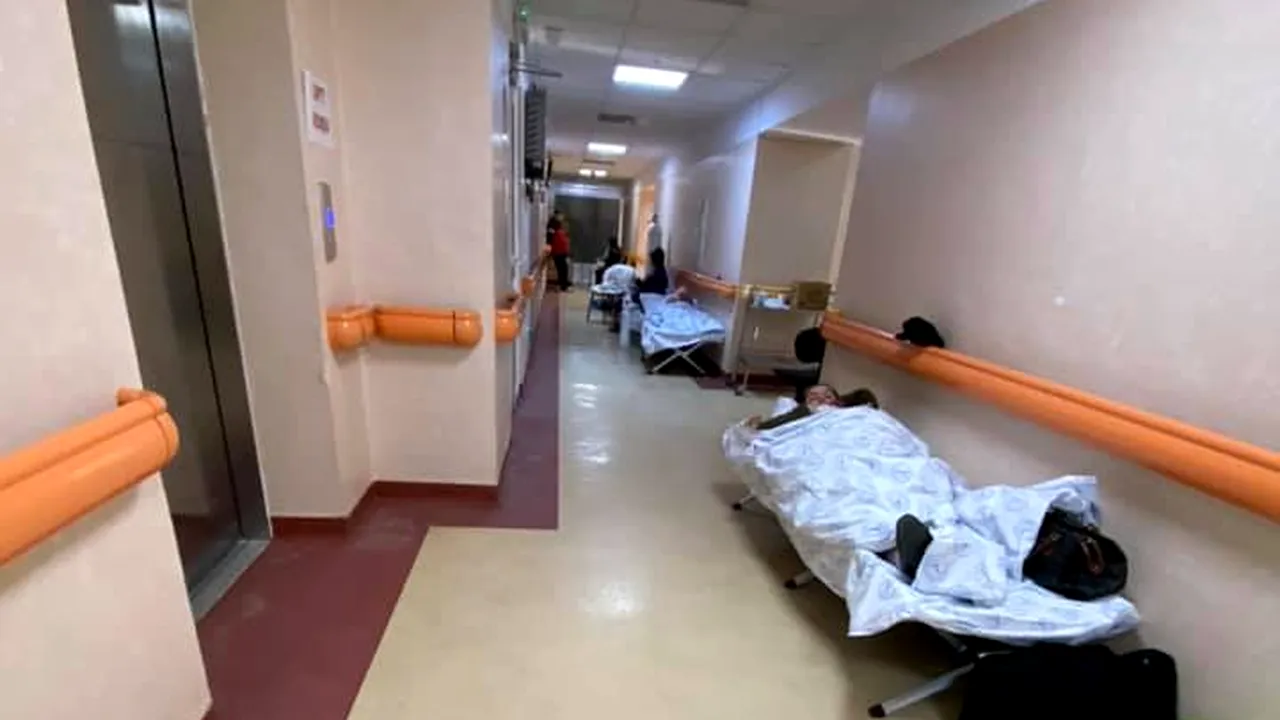 La Spitalul „Matei Balș”, holurile au devenit un adevărat „spital funcțional”, unde pacienții sunt tratați cu oxigen direct pe scaune.