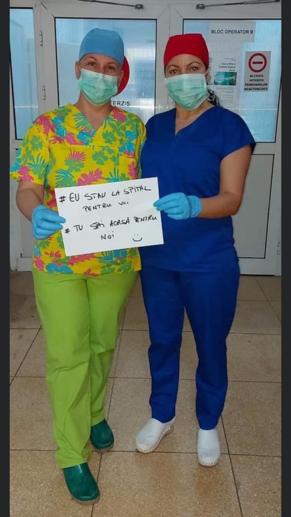 Au devenit virale pe internet fotografii cu polițiști, medici și asistenți cu m[;ti de protecție care le transmis românilor un mesaj simplu, dar important pentru combaterea pandemiei de coronavirus: „Noi suntem la muncă pentru voi, Voi stați acasă pentru noi”.