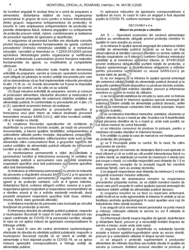 Mai mult, operatorii au obligația de a întocmi un „registru de evidență a rezervărilor clienților, astfel încât, în cazul apariției unui caz de îmbolnăvire cu virusul SARS-CoV-2 în rândul clienților unității de alimentație, să existe date concrete pe baza cărora să poată fi efectuată ancheta epidemiologică”.