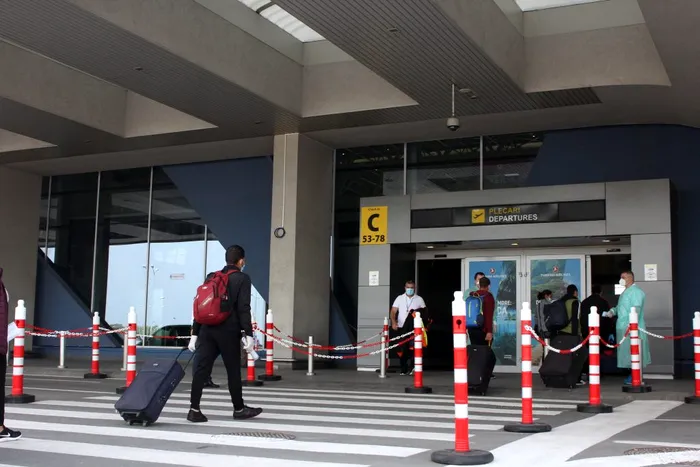 Oamenii, echipați cu măști, intră pe rând în aeroport, li se ia temperatura, apoi se deplasează către formalițiile de check-in. La intrare în aeroport polițiștii au venit și i-au rugat insistent să păstreze distanța de 1,5 m. Unii își așteaptă rândul în picioare, alții pe scaunele din exterior care au fost prevăzute, în mod expres, cu indicații care să respecte distanța impusă de autorități.