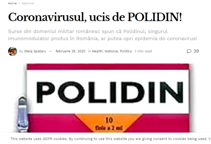 Grupul de Comunicare Strategică a înaintat astăzi, 25 martie, ministrului Afacerilor Interne, Ion Marcel Vela, propunerea de eliminare la sursă a conținutului unui articol apărut pe site-ul bpnews.ro (https://bpnews.ro/2020/02/24/coronavirusul-ucis-de-polidin/) .
