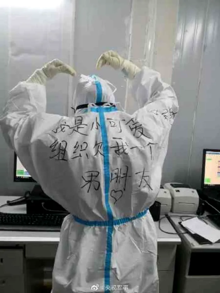 “Sper că țara mea îmi va găsi un iubit când criza Covid-19 va lua sfârșit”, a scris tânăra infirmieră Tian Fangfang.