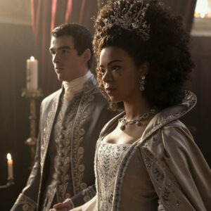 De asemenea, îl cunoaștem pe viitorul ei soț, regele George, un personaj pe care abia dacă l-am văzut în Bridgerton. Unul dintre aspectele minunate ale acestui serial este că avem ocazia să aflăm mai multe despre regele George și despre trecutul lui. Destul de repede, aflăm că regele George se confruntă cu unele provocări de natură personală, care sunt dificil de depășit.