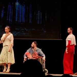Secvență din spectacolul „(Exit) Și atunci am plecat”, regia Laurențiu Rusescu
